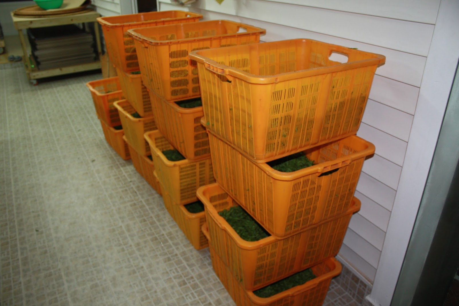 -   z tych  skrzynek   powstanie ok. 2kg  suchej herbaty  rekodziela . Potrzebna jest praca 5ciu osob . Od zbioru lisci  do  powstania  herbaty uplywaja  24godziny .  Ceny herbat typu우전 ujeon zaczynaja  sie od ok. 50 .000 Wonow (  ok. 150 zl. pln )  za 50 gram.